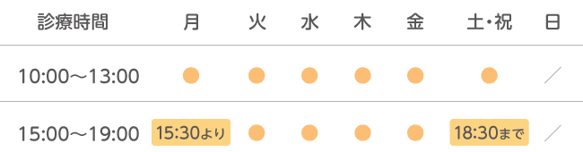 ※受付、電話対応終了時間は午前12:30、午後は平日18:30、土曜祝日は